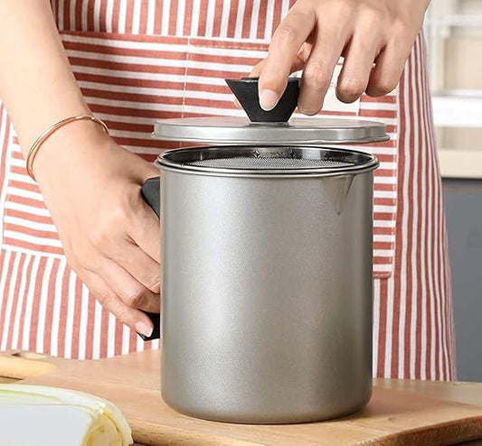 GameXcel Bacon Grease Container with Strainer Kitchen Oil Container Grease Can Oil Filter Pot 57 oz with Dust-proof Lid Non-slip Tray for Storing Fat,Frying Oil, Cooking Grease,etc