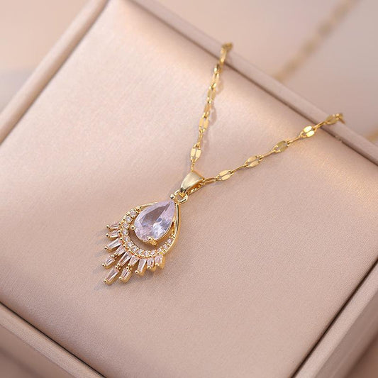 Drop Shape Zirconia Pendant Necklace for Women Fashion Gold Color Stainless Steel Necklaces Party Jewelry Accessories